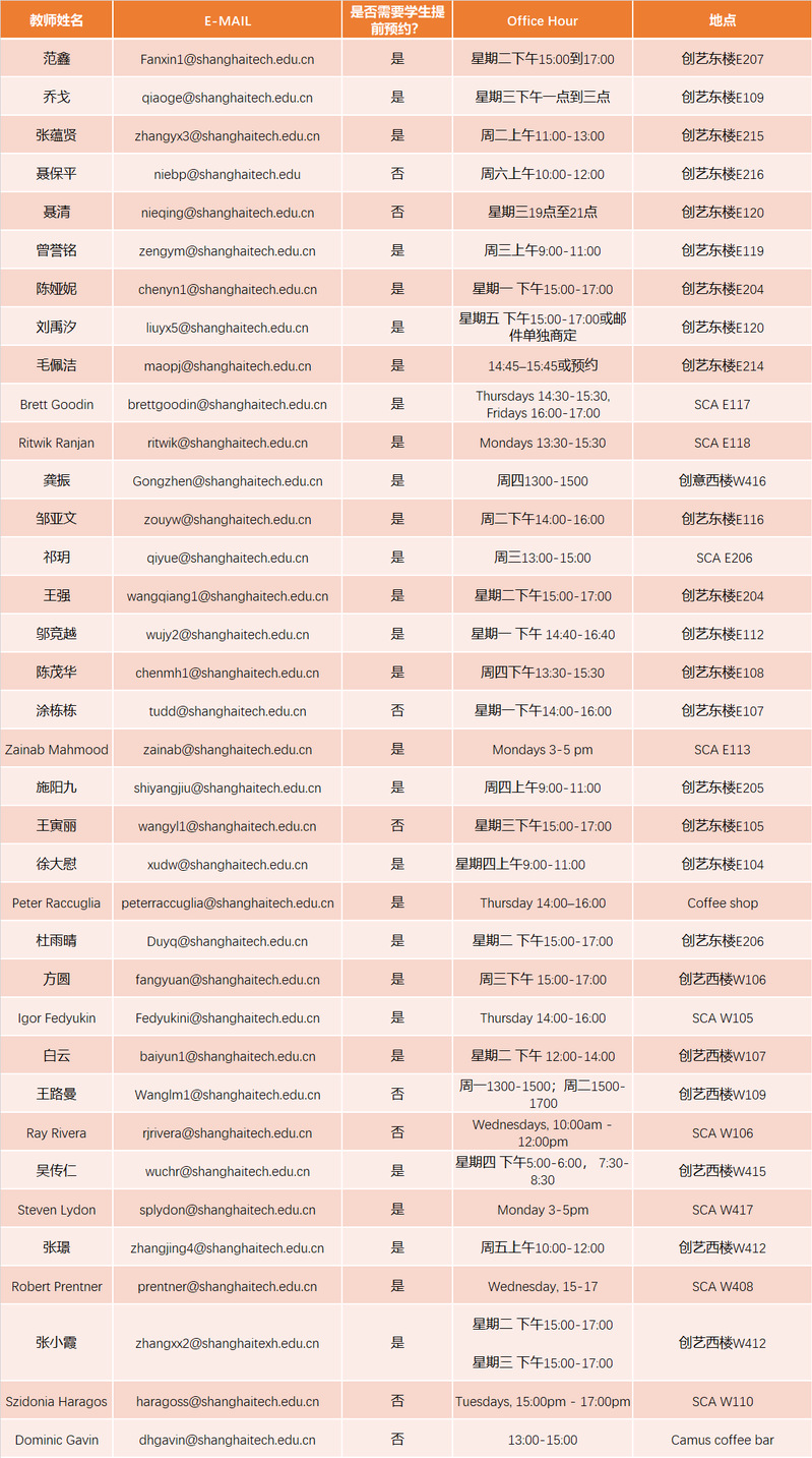 2025-2026学年第1学期人文科学研究院Office Hour 安排