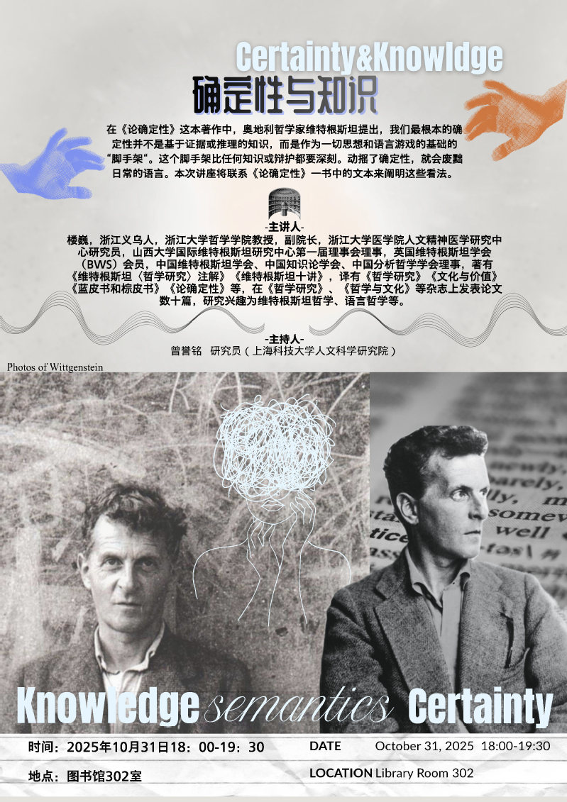The lecture titled Certainty and Knowledge – A Guided Reading of Wittgenstein’s On Certainty will be hosted at 18:00 on Friday, October 31th, in Room 302, Library of ShanghaiTech. Welcome!